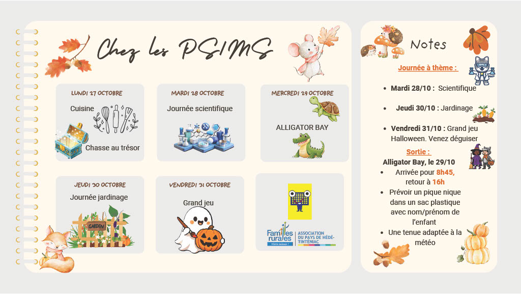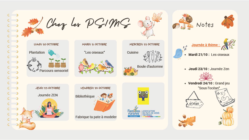 Programmes vacances d'automne Fariboles